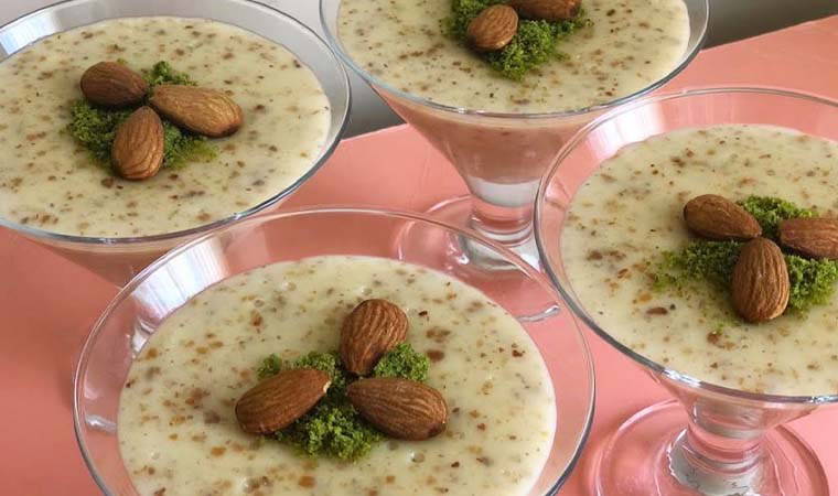Derin bir tencerede süt, pirinç unu, nişasta, şeker ve yumurta sarısı karıştın. Malzemelerin iyice karıştığından emin olduktan sonra badem tozu, hindistan cevizi tozu ve vanilyayı ekleyin. Daha sonra karışım orta ateşte sürekli karıştırılarak pişin. Kaynamaya başladıktan sonra kısık ateşte biraz daha pişin. ve ocaktan alın. Keşkülü kaselere boşaltılır ve soğumaya bırakılır. Oda sıcaklığına ulaşan keşkülü toz antep fıstığı veya tarçınla süsleyerek soğuk olarak servis edebilirsiniz. İftar için tatlınız hazır, afiyet olsun.