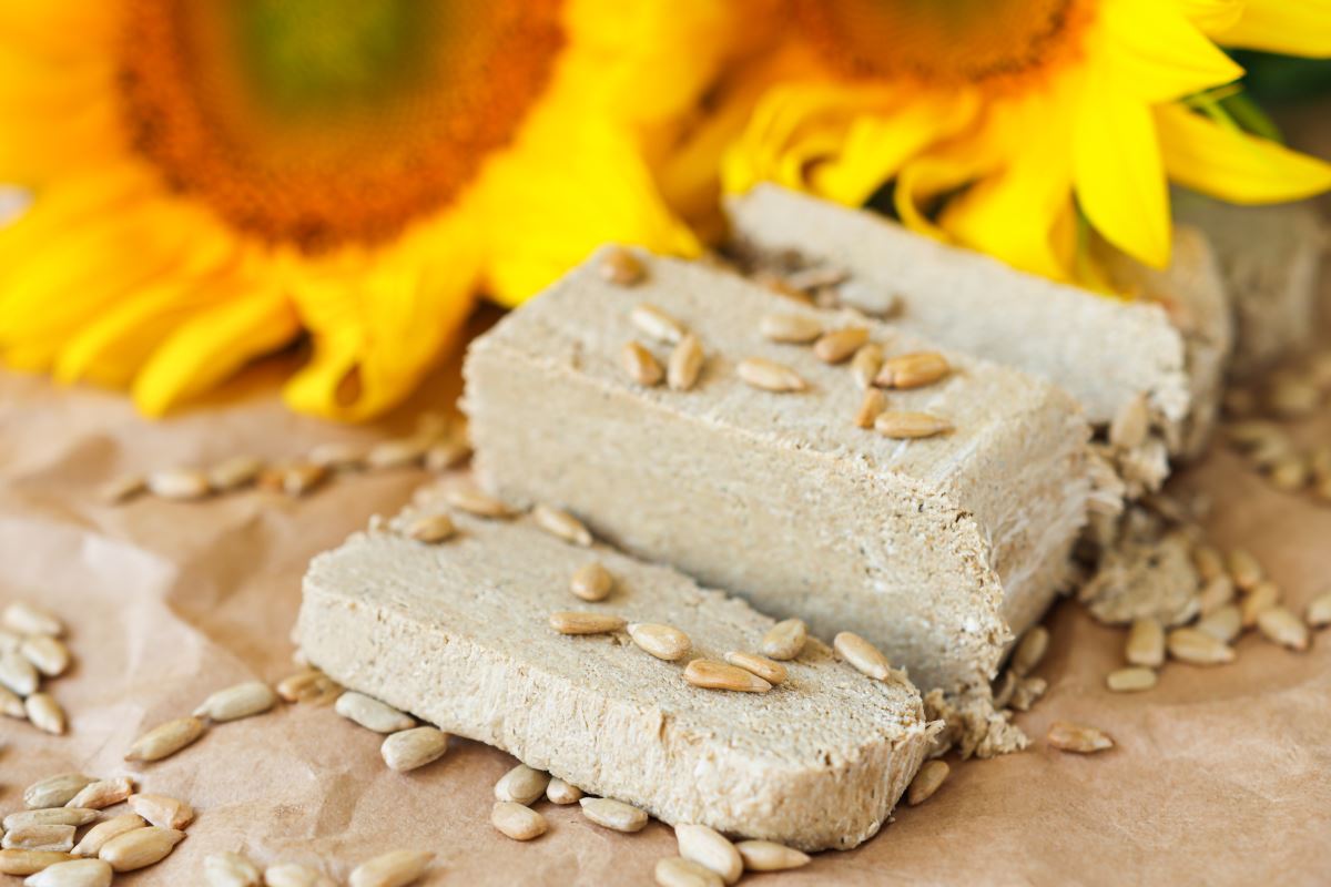 Geniş bir tavanın içerisine unu alın ve kısık ateşte unun kokusu çıkana ve rengi değişene kadar kavurun. Unu ocaktan alın ve soğumaya bırakın. Ayrı bir tavanın içerisine tahini alın ve orta ateşte karıştırarak ısıtmaya başlayın. İçine pudra şekerini ilave edin ve karıştırın. Ardından azar azar soğumaya bıraktığız unu ekleyin. Kıvamını toparlamaya başladığında un ilave etmeyi bırakın. Bir kalıbın veya kasenin içine streç film yerleştirin. Helvayı bu kalıbın içerisine bastırarak alın. Üzerini kapatın, önce oda sıcaklığında sonra buzdolabında dinlendirin. Tamamen soğuyup sertleşince dilimleyerek servis edin. Afiyet olsun.