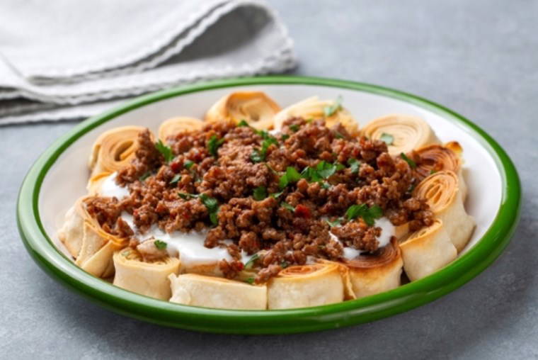 Kenarda ayırdığınız yoğurt sosunu da kıymalı harcın üzerine gezdirin.
