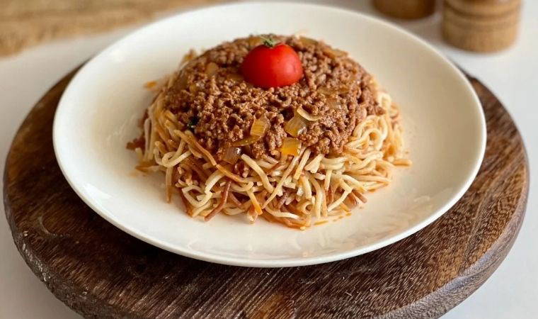 Her iki hazırlık da tamamlandığında, derin bir kaseye önce kıymalı harcı ekleyin, ardından üzerine erişteyi yerleştirip kasede sıkıca bastırın.