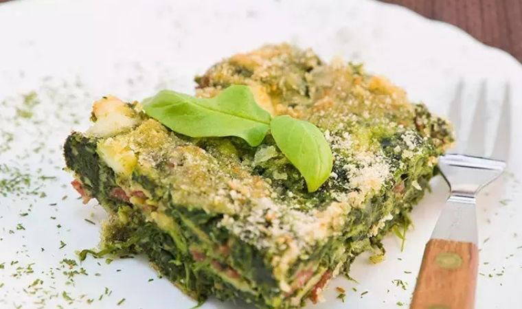 Son olarak, boza kıvamındaki karışımın kalan kısmını ıspanakların üzerine dökün, ama ıspanakları tamamen kapatmamaya özen gösterin.