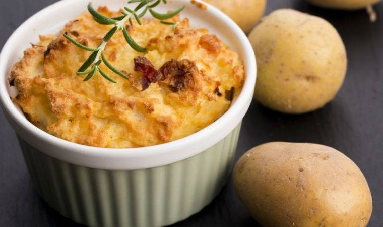 Fırından çıkan patates sufleyi biraz soğutun ve ardından sıcak olarak servis yapın.