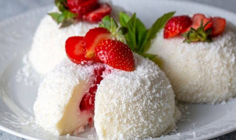 Tatlıları fincanlardan dikkatlice çıkartın ve Hindistan cevizine bulayın.