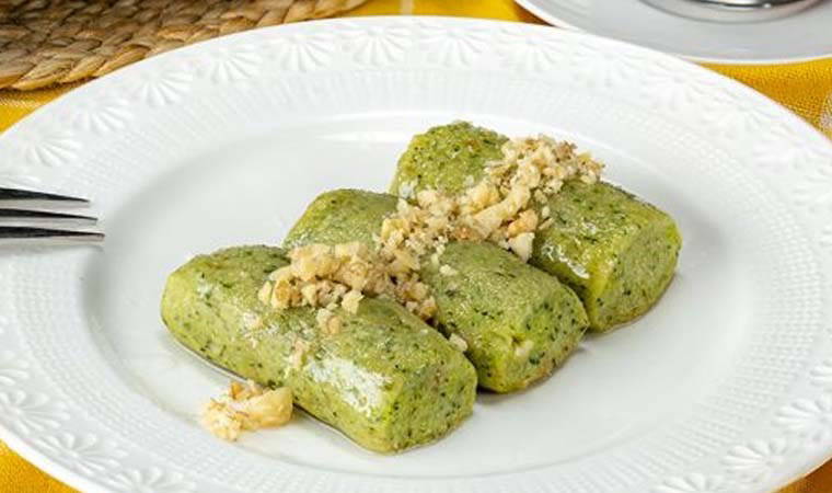 - Parmak uçlarında iyice yoğurarak cıvık hale getirip yavaşça un döküp yoğuruyoruz o esnada rondodan geçirdiğimiz ıspanak püresini de ekleyip unu az ise un koyarak kulak memesi kıvamına gelene kadar yoğuralım.