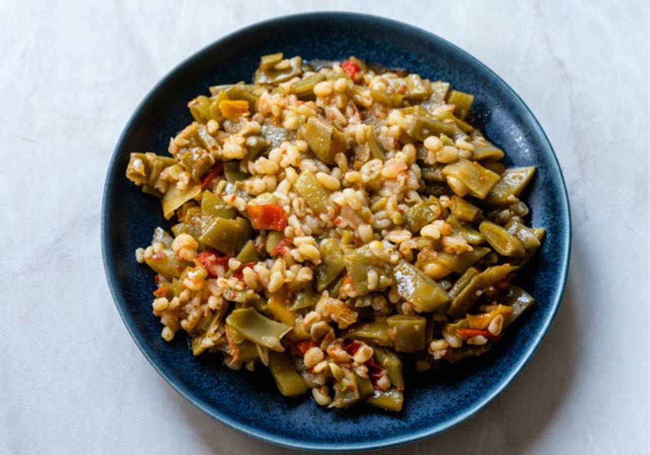 Öncelikle fasulyeleri ayıklayın ve küçük küçük doğrayın. Soğanı küp küp doğrayın. Domateslerin de kabuklarını soyun ve küp küp doğrayın. Bir tencerenin içine zeytinyağını kızdırıp soğanları kavurun. Daha sonra üzerine fasulyeleri ilave edin. Fasulyeleri soğanla birlikte bir kaç dakika kavurun. Domatesleri ekleyin. Güzelce karıştırın ve fasulyeleri kendi suyunda pişirin. Üzerini geçecek kadar sıcak su ilave edin. Kaynatın. Tereyağını ekleyin. Yıkanmış pirinçleri ekleyin. Tuz ve karabiberi ekleyin. Karıştırın. Dibleyi fasulyeli pilav gibi düşünün. Pirinçler şişip suyunu çekene kadar pişirmeye devam edin. Afiyet olsun.