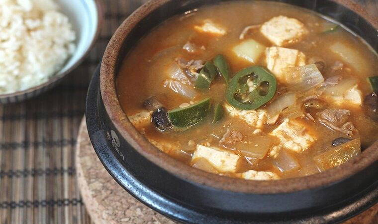 Fermente soya fasulye ezmesi olan doenjang, nefis sebzelerle bir araya geldiğinde ortaya çıkan Doenjang Jjigae, sıcacık bir çorba ile sofranıza lezzet katıyor. İçerdiği tofu, sebzeler ve benzersiz baharatlarıyla bu çorba, Güney Kore'nin geleneksel mutfaklarından birine keyifli bir yolculuk sunuyor. Şimdi, bu basit ve lezzetli tarifle evinizde Kore mutfağını deneyimleyin!