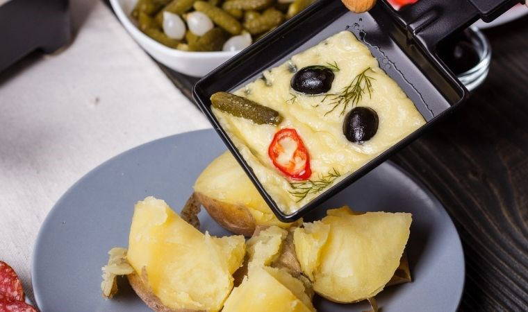 Raclette makineniz yoksa, peynirleri düşük ısıda bir tavada eritebilir ve üzerine sebze veya patates ekleyerek sıcak bir şekilde servis edebilirsiniz.