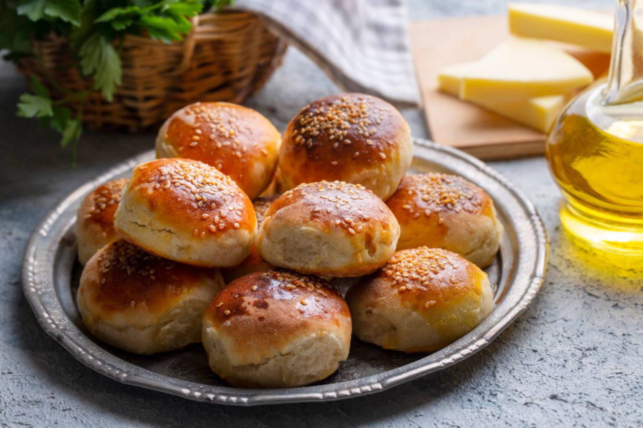 Öncelikle unu derin bir kaseye alın. Ortasını açıp zeytinyağı, tereyağ, yumurta akı (sarısını ayırın), yoğurt, sirke, kabartma tozu ve tuz ilave edip yoğurmaya başlayın. Yavaş yavaş hamur toparlanmaya başlayacaktır. Eğer hamur yapışıyorsa yavaş yavaş un ilave edin. Ele yapışmayacak hale gelene kadar yoğurun. 20 dakika dinlendirdikten sonra, mandalina büyüklüğünde parçalar koparıp avucunuz içinde yuvarlayın. Ortasına maydanozlu peynirli karışımdan ekleyin. Kenarları açık kalmayacak şekilde kapatın. Tepsiye yağlı kağıt serin. Poğaçaları dizin. Üzerine fırça yardımıyla yumurta sarısı sürün. En son susamıda ekleyip, önceden ısıtılmış 180 derece fırında kızarana kadar pişirin. Afiyet olsun.