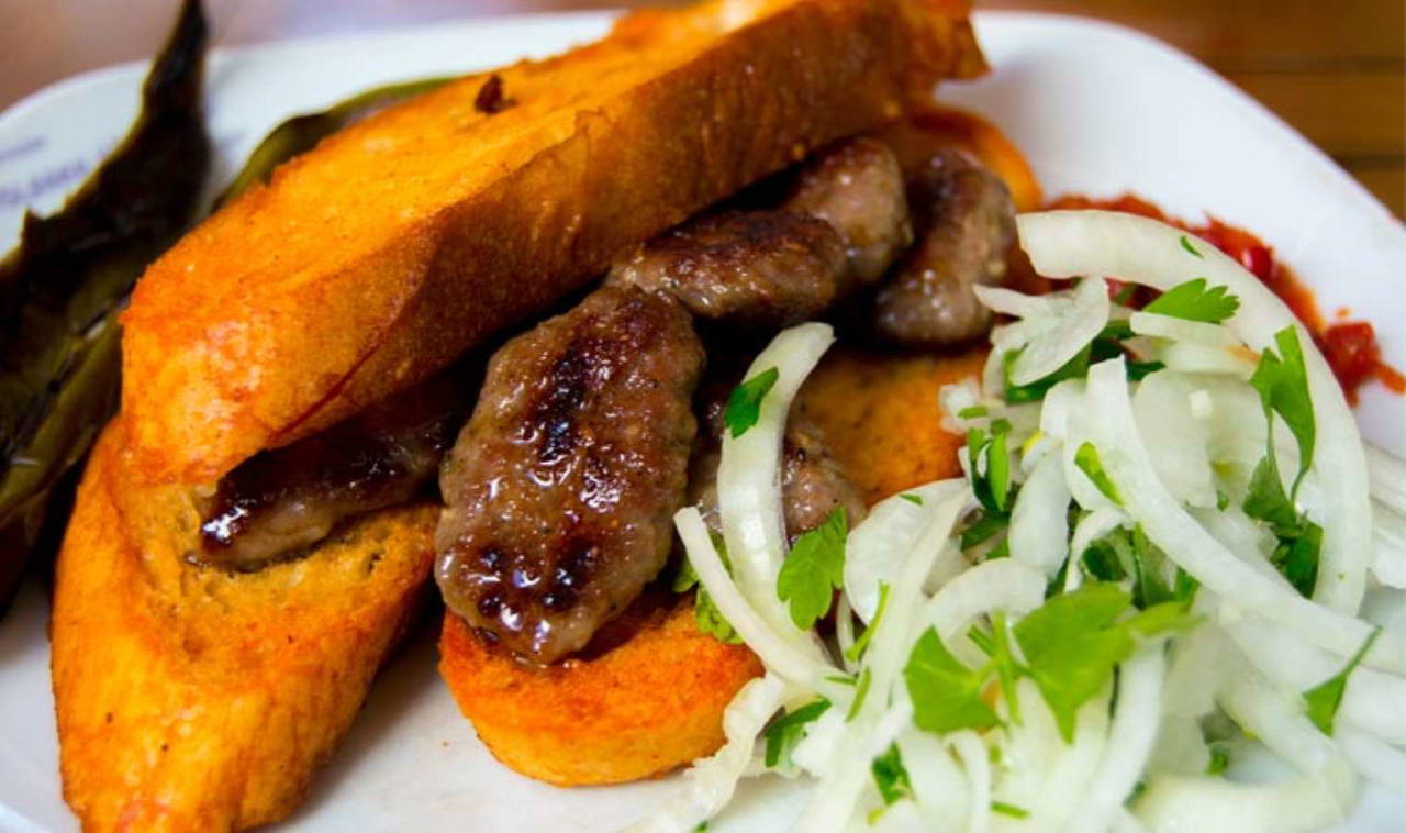 Öncelikle ekmekleri ıslatmak için sosu hazırlayın. Kemik suyu, ayçiçek yağı, kırmızı toz biber ve çok az tuzu bir tavada ısıtın. Kaynatmaya gerek yok. Köfte için kıymayı geniş bir kaba alın. Ekmek içlerini ekleyin. Rendelenmiş soğanı ve sarımsağı ekleyin. Tuz ve karabiber ekleyin. İyice yoğurun. Kurutulmuş ekmek içi soğanın suyuyla birleşinde kolayca yoğuruluyor. Köfteden ceviz büyüklüğünde parçalar koparıp elinizde yuvarlayarak uzun ve yassı köfteler hazırlayın. Köfteleri ızgarada veya yapışmayan tavada çok az yağ ilave ederek önce arkalı pişirin. Aynı tavada ekmekleri sosa bandırıp kızartın. Ekmekleri servis tabağına alın. Üzerine köfteleri dizin. Servis için köfteleri ve ekmekleri kızarttığınız tavada, biber ve domatesi çok az kızartarak yanına ekleyebilirsiniz. Dilerseniz yanına soğan ve maydanoz doğrayabilirsiniz. Afiyet olsun…