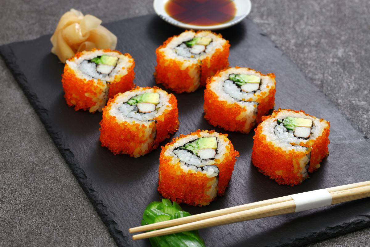 Sarı kuyruk (hamachi) veya karides ile fasulye filizi, havuç, avokado, salatalık, acı biber, baharatlı mayonez ve balık yumurtasıyla hazırlanır.