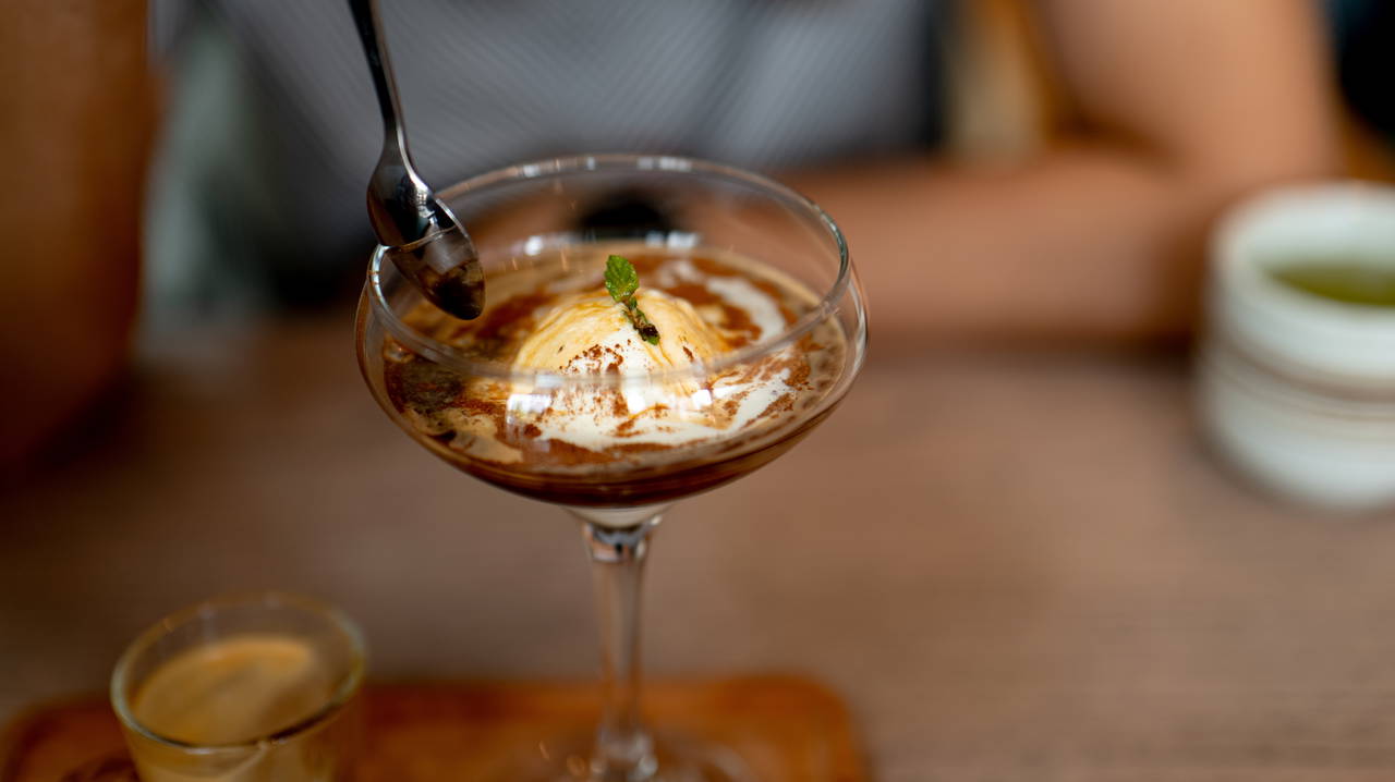 Espresso, dondurmayı kısmen eriterek kremamsı ve zengin bir lezzet oluşturur.