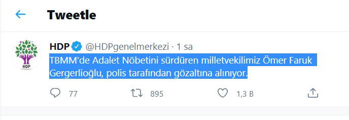 Gergerlioğlu’nun gözaltına alındığı görüntülerini HDP’li Hüseyin Kaçmaz ve Filiz Kerestecioğlu Twitter'dan canlı yayınladı. HDP’li Kerestecioğlu canlı yayında şunları kaydetti: