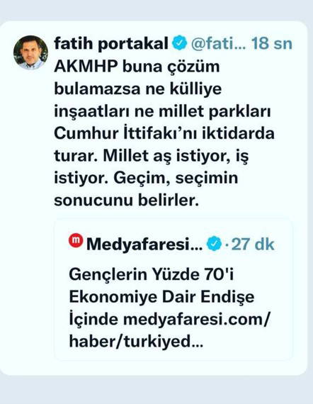 Ekonomik İşbirliği ve Kalkınma Teşkilatı'nın (OECD) son araştırmasında Türkiye'de gençlerin yüzde 70'inin ekonomik endişe içinde olduğunu belirten Portakal 'Geçim seçimin sonucunu belirler' dedi.