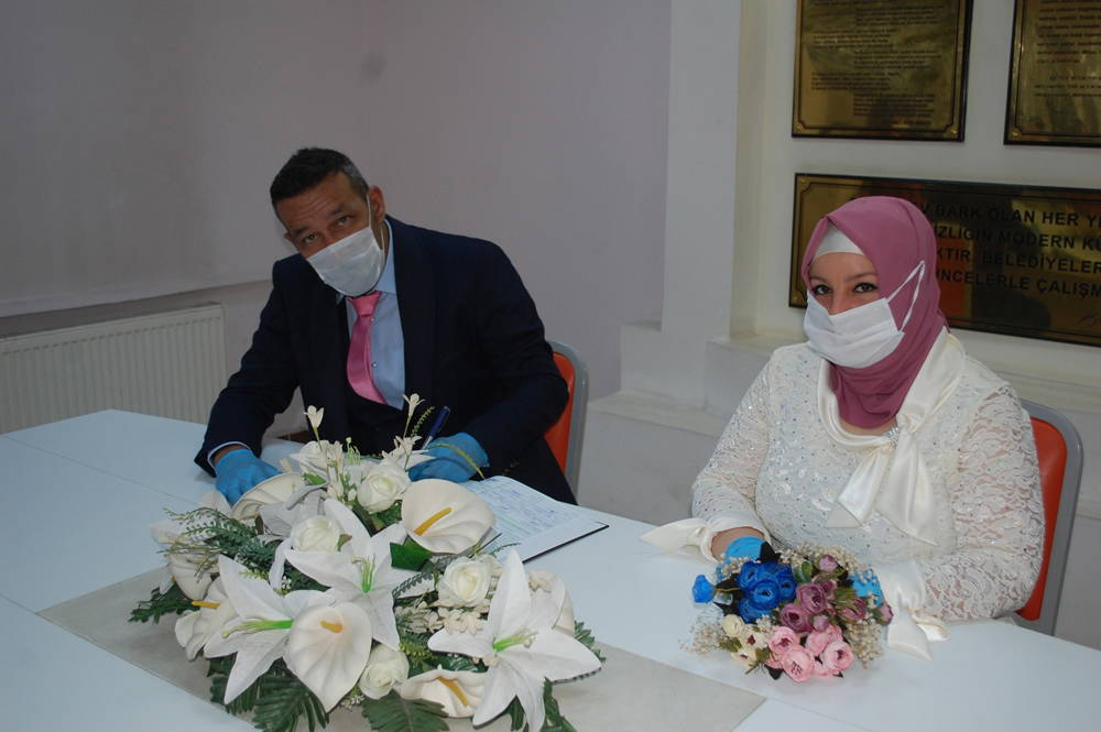Pirinçeşme Mahallesi’nde faaliyet gösteren bir madencilik firmasında kamyon şoförlüğü yapan Cennet Öztürk (32) ve Nihat Sinan (36), tanıştıkları maden ocağında gönüllerini birleştirdi. 9 aylık mutlulukla geçen birlikteliğin ardından kamyon şoförü çift evlilik kurdu.