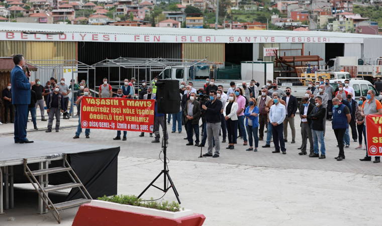 İzmir'in Bayraklı ilçesinde tam kapanma uygulaması nedeniyle erken düzenlenen 1 Mayıs Emek ve Dayanışma Günü etkinliğineBayraklı Belediye Başkanı Serdar Sandal yanı sıra CHP Bayraklı İlçe Başkanı Pınar Susmuş, CHP ilçe örgütü yöneticileri, belediye bürokratları ve işçiler katıldı.