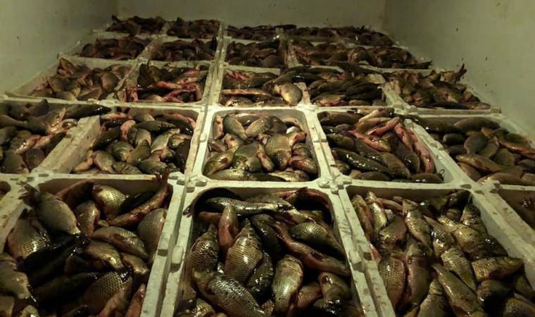 Ele geçirilen 2 ton sazan balığı, İl Gıda, Tarım ve Hayvancılık Müdürlüğü'ne teslim edildi.