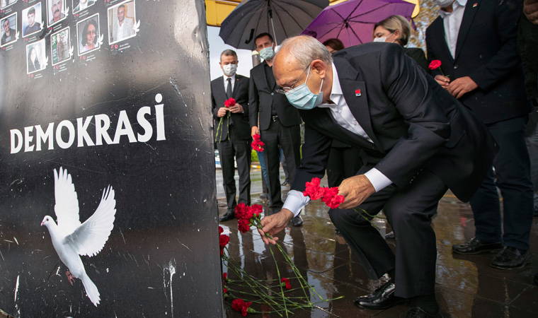CHP lideri Kılıçdaroğlu ve beraberindeki heyet patlamanın yaşandığı Ankara Garı'nda, bu sabah 103 kişinin anısına karanfil bırakıp, saygı duruşunda bulundu. Kılıçdaroğlu’na, CHP Genel Sekreteri Selin Sayek Böke, CHP Ankara İl Başkanı Ali Hikmet Akıllı ve Ankara milletvekilleri Murat Emir, Ali Haydar Hakverdi, Gamze Taşcıer eşlik etti.