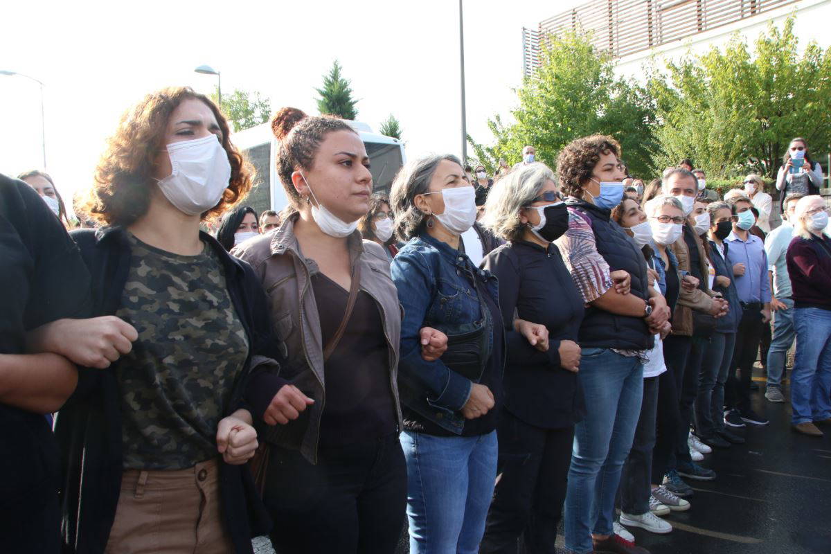 10 Ekim’e hayatını kaybedenlerin fotoğraflarının olduğu pankartı açan aileler, 1 dakikalık saygı duruşunun ardından ölenlerin isimlerini tek tek okudu. Daha sonra pankartın üzerine karanfiller atıldı.