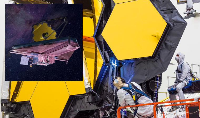 Hubble Uzay Teleskobu’nun rakibi olarak görülen JWST teleskobunun, Ekim Ayı’nda uzaya fırlatılmadan önce son katlama testlerinin yapıldığı açıklandı. NASA, teleskobun aynalarının başarıyla komut edildiğini belirtti. 6 buçuk metre genişliğindeki altın rengi reflektörlerin katlanarak rokete konulmasını test eden uzay mühendisleri, uzayda bu reflektörlerin problemsiz açılması için teste tabi tuttuklarını belirtti.