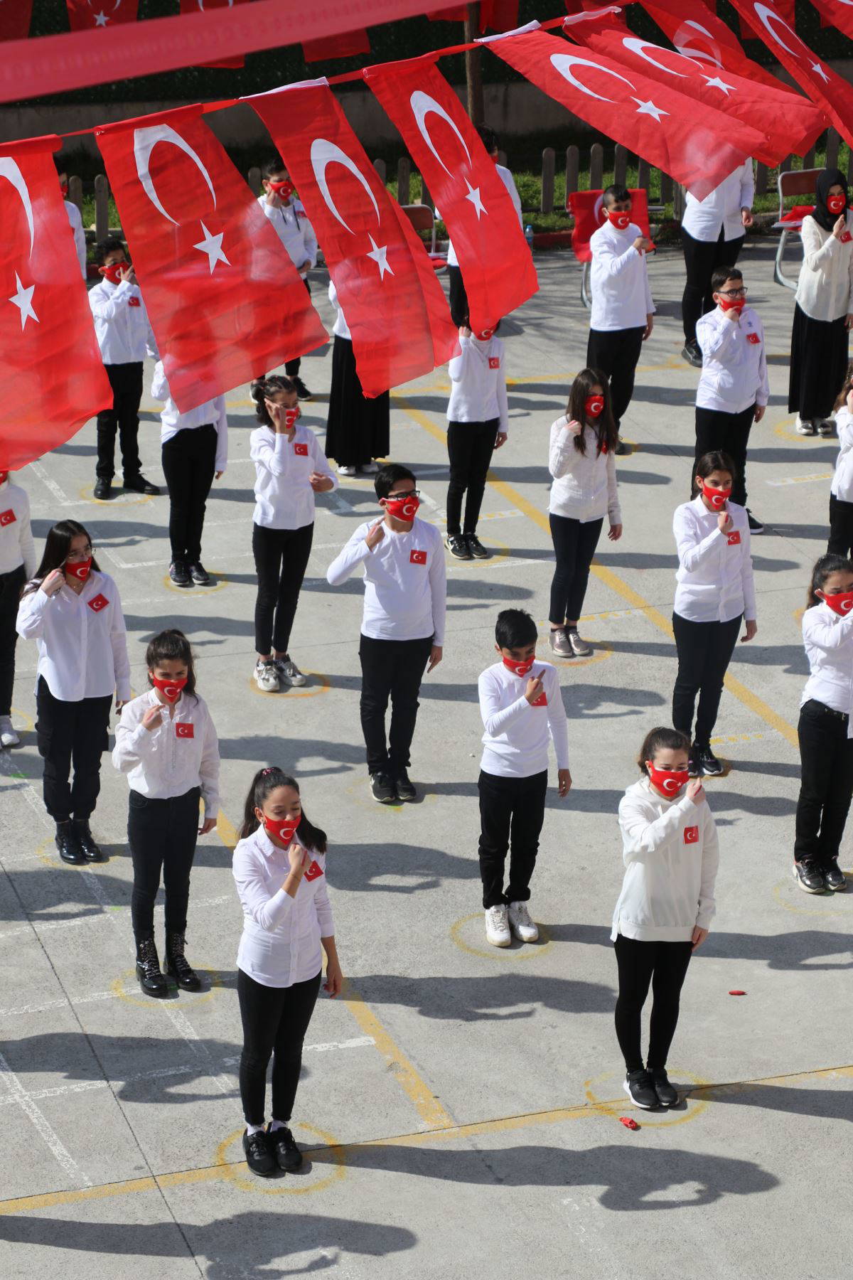 İstiklal Marşımızın kabulünün 100'üncü yılı olması nedeniyle büyük bir gururla bu çalışmayı yaptık. Çok mutluyuz. Çocuklarımıza bunu aktarabildiğimiz için çok sevinçliyiz. Zor bir süreçti ama bu milli duyguyu pandemi dönemine de denk gelse yaşamalıydık, yaşatmalıydık. Biz de öğretmenler olarak en büyük görevimiz bu diye düşünüyoruz" dedi.