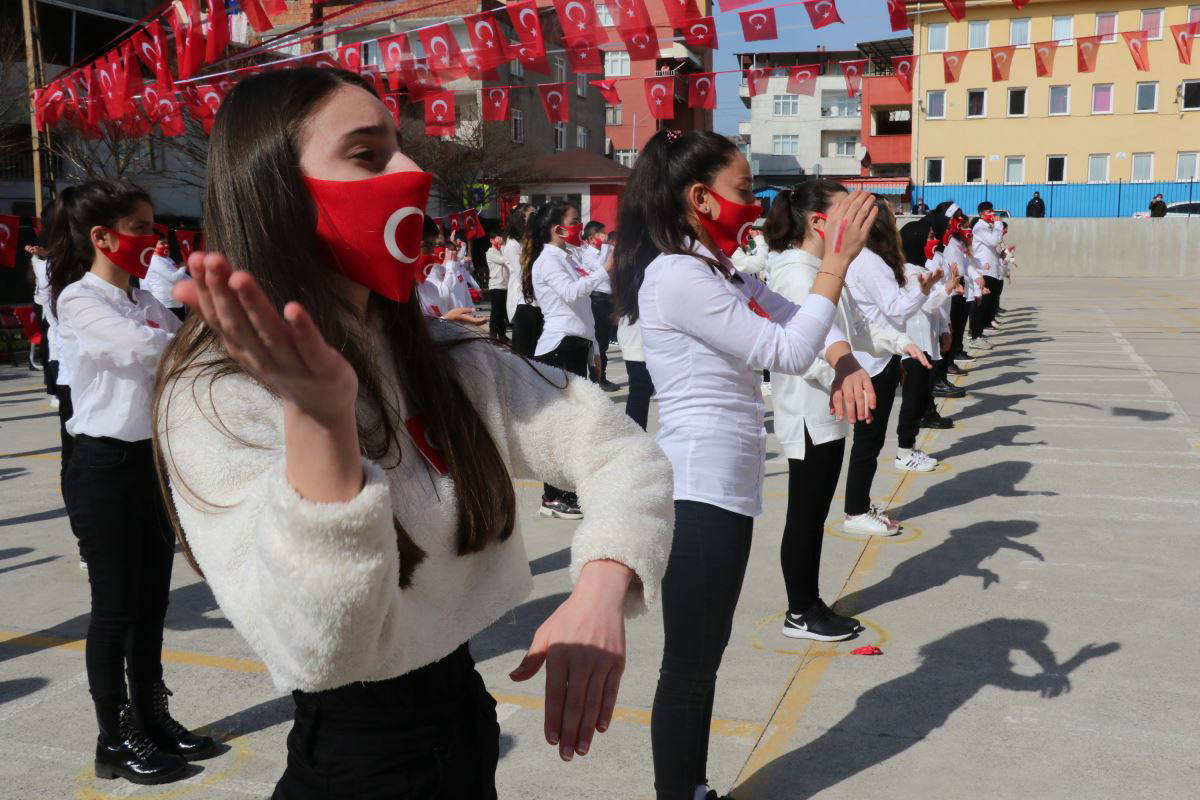 İstiklal Marşı'nın kabulünün 100'üncü yılı anısına başlatılan çalışmaya İşitme Engelliler Ortaokulu'ndan 10 öğrenci de dahil edildi. Bugün düzenlenen programla okul bahçesinde bir araya gelen öğrenciler, İstiklal Marşı'nı işaret dili ile okudu. 'İstiklal Marşımızı duymayan kalmasın' sloganıyla yürütülen çalışmaya katılan öğrenciler büyük gurur yaşadıklarını söyledi.