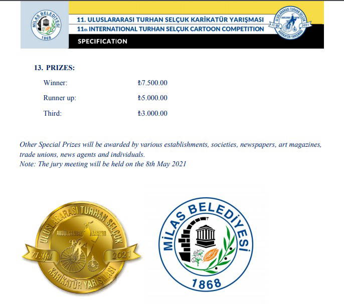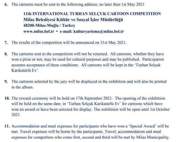 6- Karikatürler, 1 Mayıs 2021 tarihine kadar aşağıdaki adrese gönderilmiş olmalıdır.
