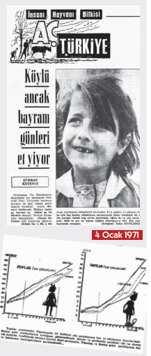 İnsanı, hayvanı, bitkisi aç bir Türkiye’nin çarpıcı bilimsel verilerini istatistiklerle, tablolarla aktarmıştım.. Kabaca en çarpıcı verileri ile iyi beslenen Nişantaşı’nda doğmuş bir bebeğin boy, kafatası gelişimi verileri ile Boston standardını yakaladığını, Rami’deki çocukların geriye düşmelerini ve çok daha da vahim örnekleri aktarmıştım. Aynı ölçekler içinde o tarihlerde hayvan varlığında hiç yetersiz olmayan ülkemizde, hayvanların süt ve et verimi eksikliklerini yine bilimsel raporlarla okurla paylaşmak istemiştim.