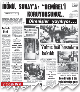 15 Ocak günlü gazetemizde Türk-İş’in sola kaymasının istendiği, karşı çıkışın haberi var. 1967-70 yıllarının tereddütsüz davaya ihanet dönemi olarak değerlendirilebileceği vurgulaması yapılmış. Partiler üstü politikanın terk edilmesi istenmiş. Türk-İş’in demokrasi ve özgürlüklere bağlı sol bir karargâhta yerini alması gerektiği savunulmuş.