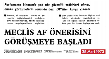 Ecevit’in başkanlığında CHP, Erbakan başkanlığında MSP koalisyon görüşmelerine af gündemi ve anlaşmasından yola çıkmışlarken yürüdükleri yollara, Demirel’in önderliğinde Amerikancı ideolojiden yana taşlar bir bir, ustaca konuluyor. 14 Mayıs günü Meclis’ten çıkan afta 163 suçları kapsam içinde, 141-142 suçları kapsam dışında kalıyor. Af; sevinç, üzüntü, siyasal bunalım yaratıyor. Ecevit’in istifası gündeme geliyor. Anayasa Mahkemesi’nin 12 Temmuz 1974’te yayımlanan kararı imdada yetişiyor, 141-142 suçlarından mahkûm olanlar için de tahliyeler gerçekleşiyor.