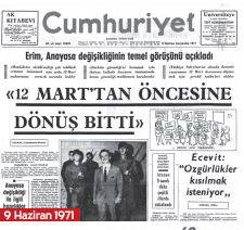 Ne rastlantı ama 11 Temmuz tarihli Cumhuriyet gazetesinde Erim’in “partileri uzlaştıramadım” itirafı ile birlikte anayasa taslağının Meclis’e geldiği duyuruluyor. Sayfanın diğer yarısında Gezmiş ve arkadaşlarının yargılanmalarının yer alması sizce rastlantı mıdır?