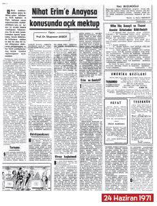 Aynı gün ikinci sayfadaki yazısında Prof. Muammer Aksoy, Nihat Erim’e anayasa konusunda açık mektupla ağır eleştirilerini getiriyor.