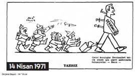 Kendi adıma yine çok sevdiğim için 14 Nisan günlü Ali Ulvi’nin karikatürünü paylaşmaktan vazgeçemeyeceğim. 15 Nisan günlü gazetemizin fotoğraflı haberinde Nihat Erim hükümetinin o dönemlerde de kamuoyu oluşturmada çok işe yarayacağı varsayılan, gençparlak-uluslararası ünlü ekonomist olarak Atilla Karaosmanoğlu’nun fotoğraflı kimliği paylaşılmış. Haberin hemen altında yetki sorunlarını çözemiyor olsa da 274-275 sayılı yasalarla işleyen toplusözleşmeler üzerinde, Profilo’da 1300 işçinin greve çıkmasının haberi var. DİSK’e bağlı Maden-İş sadece benzeri koşullardaki işyerlerinde imzalamış oldukları sözleşmelerin hakları için direneceklerinin açıklamasını yapmış. Ankara PTT’de de Haberİş Sendikası’nın grevi başlamış. Tarihlerin çakışmasına isterseniz kaderin cilvesi diyelim.