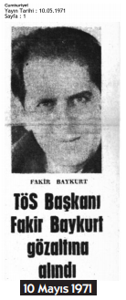 Baykurt’un gözaltına alındığı haberinin içinde, “saçsakal kesilmede bir emir olmadığı açıklamasının yapılması” yeterince ilginç değil mi? 16 Mayıs günlü Cumhuriyet’in birinci sayfası ise Sendikalar Yasası’nın bazı maddelerinin anayasaya aykırı olduğuna ilişkin, Anayasa Mahkemesi raportörlerinin görüşlerini paylaşıyor. Nadir Nadi günübirlik gündem üzerinden anayasa üzerinden görüşlerini aktarıyor.
