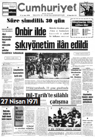 26 Mayıs tarihli Cumhuriyet’te sıkıyönetimin iki ay daha uzatıldığı haberi paylaşılırken, “gözü kapalı neredeyse bütün okuryazarları tutuklama usullerinden vazgeçilebileceği açıklaması yapılıyordu. Elrom’un öldürülmesine ilişkin tutuklamaların haberi de yer alıyordu. 29 Mayıs günlü Cumhuriyet haberinde ise Nadir Nadi’nin Fransız TV’sine verdiği, güncel gündeme ilişkin görüşler özetlenmişti.