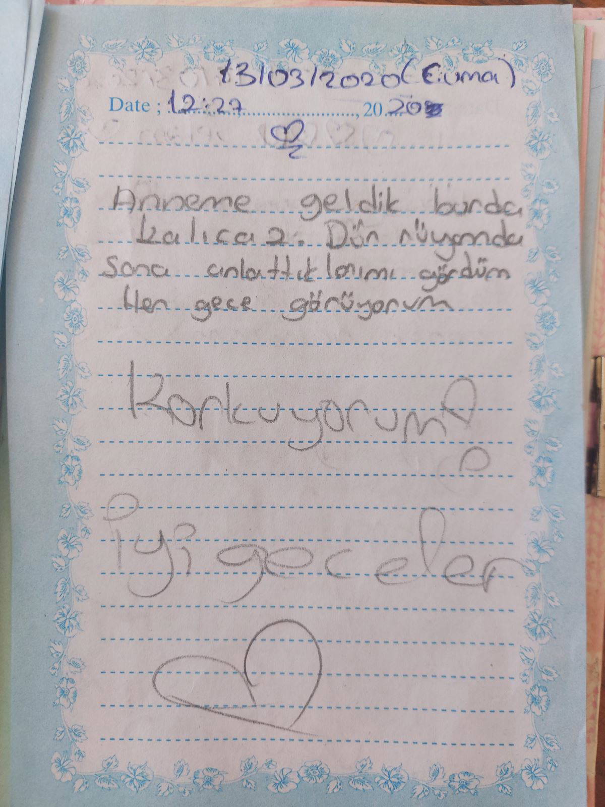 Evde karşılaştığı tacize de günlüğünde yer veren İ.T'nin, yaşadıklarının gece rüyalarına girdiğini, okuldayken dahi aklından atamadığını da satırlara aktardı. İ.T. şu ifadeleri kullandı: