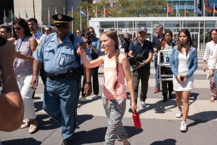 BM İklim Zirvesi'ne katılmak için İngiltere'den açıldığı sıfır karbondioksit salınımlı yelkenliyle Atlantik Okyanusu'nu geçerek New York'a gelen Thunberg, küresel ısınmaya karşı mücadele için başlattığı iklim eylemlerine burada da devam etti.