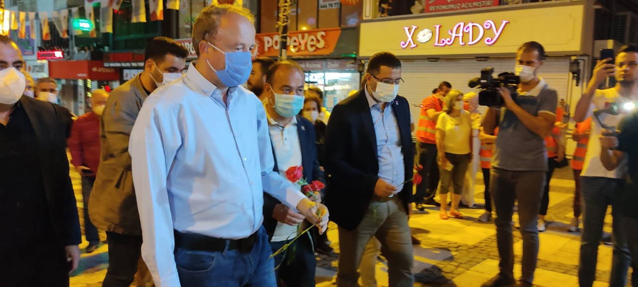 Konuşma sonrası Avcılar Belediye Başkanı Turan Hançerli öncülüğünde 17 Ağustos Depreminde hayatını kaybedenlerin anısına Deprem Anıtının önüne karanfiller bırakıldı.