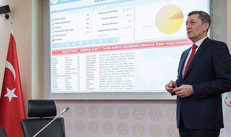Konuşmasının ardından Bakan Selçuk, bilgisayar kurasını başlatmak için salonda bulunan kişilerden rakam söylemelerini istedi. Kura için gereken sayı basın mensuplarından gelen rakamlardan oluşturulurken, Selçuk "Hepinizin huzurunda atamayı otomatik olarak başlatmak üzere butona basıyorum. Hayırlı uğurlu olsun" diyerek bilgisayar kurasını başlattı. Kurayla belirlenen 19 bin 921 bin sözleşmeli öğretmenin branşları, görev yerleri ve atandıkları iller salondaki dev ekrana yansıtıldı. Atama sonuçları, Bakanlığa ait 'meb.gov.tr' ve 'personel.meb.gov.tr' adreslerinin yanı sıra e-devletten de öğrenilebilecek.