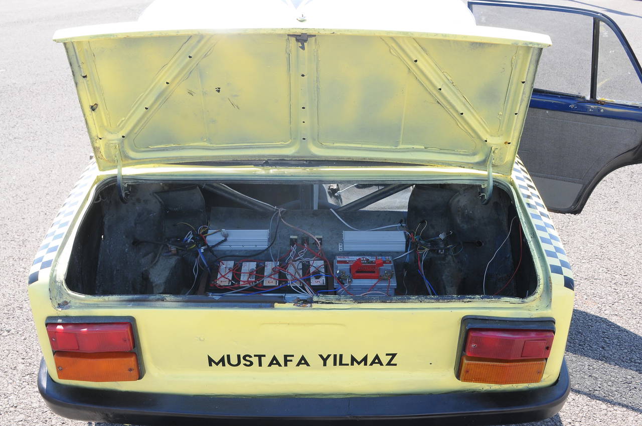 "Aracın hurdadan alınması haricinde üzerinde yapılan bütün modifikasyonlar bizim özgün çalışmamız oldu. Burada çok olumlu tepkiler de bizim için çok güzel oldu. Aracı yarışma konseptine uydurabilmek için sanayide aylarımızı harcadık. Aracın ilk olarak direksiyonunu ayırdık. Daha sonra araçtaki motor ve şanzımanı söktük. Çünkü elektrikli bir proje olacaktı. Aracın üzerindeki içten yanmalı motoru kullanmayacağımız için ağırlık yapmasını istemedik. Bütün sistemleri komple söktük. Aracın üzerindeki hazır direksiyon kutusuna bir elektrik motoru bağladık. Bunun belirli kademelerde ölçümlerini yaparak elektronik bir dönüş mekanizması oluşturduk. Daha sonra arkadaki 13 inçlik jantlarımızın içini oyarak, oraya elektrikli hub motorları kaynattık. Bu da tornalanması, kaynaklanması ve testlerinin yapılması süreçlerinde 3 hafta kadar sürdü. Ekip olarak büyük bir çaba ile 1989 model klasik bir aracın, şu anda 2021 yılında otonom, sürücüsüz bir şekilde gidebilmesini sağladık."