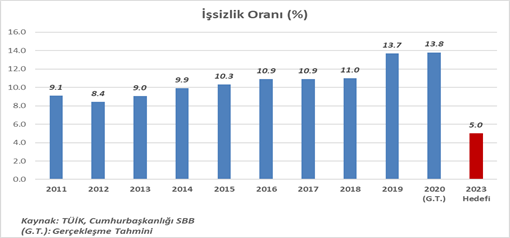 2023 hedeflerini açıkladığınız 2011’de ülkemizde işsizlik oranı yüzde 9,1 idi. Bugün yüzde 13,8. 10 yılda işsizlik oranını 4,7 puan artırdınız. Bu “performansla” gelecek üç yılda işsizliği 8,8 puan birden nasıl düşüreceksiniz Sayın Erdoğan?"