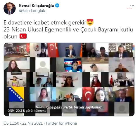 — Kemal Kılıçdaroğlu (@kilicdarogluk) April 22, 2021