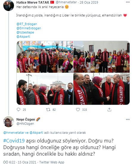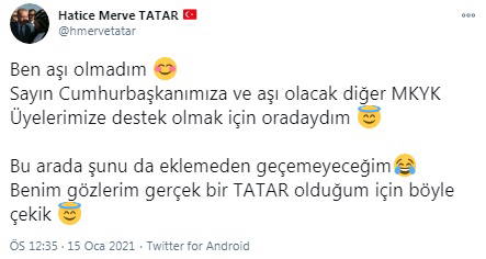 Aşı yaptıranlar arasında, AKP MKYK Üyeleri arasında yer alan 23 yaşındaki Hatice Merve Tatar’ın da bulunduğuna yönelik bir iddia, sosyal medyada tepki çekti.