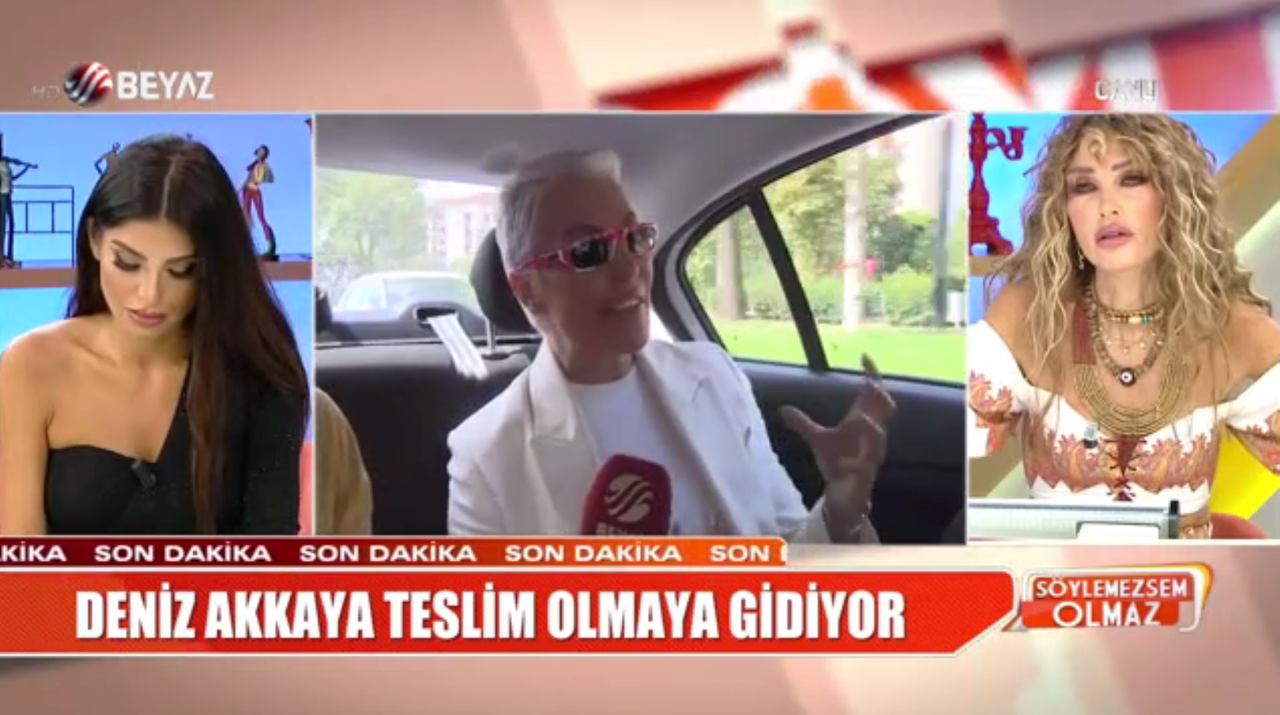 Cezasını çekmek üzere teslim olan Deniz Akkaya, öncesinde sunuculuğunu üstlendiği Beyaz Tv’de Söylemezsem Olmaz’ın televizyon programının yayınına görüntülü olarak bağlandı.