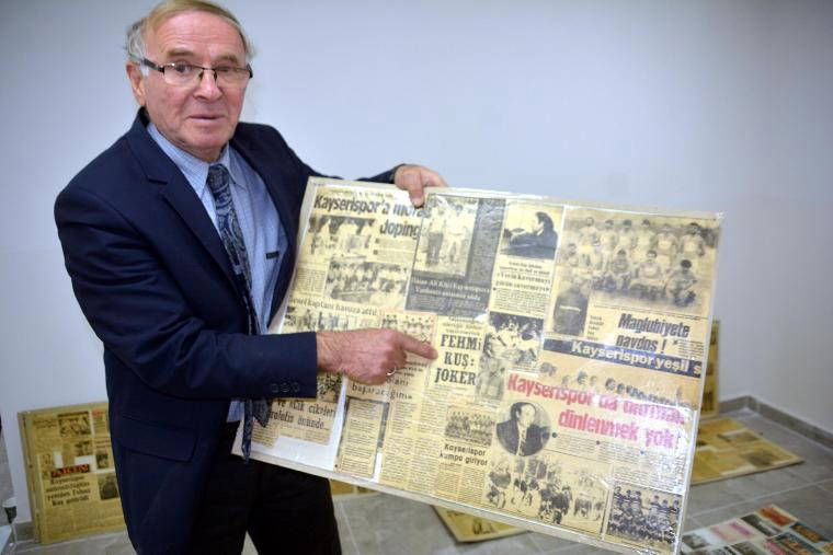 Bir dönem Kayserispor'un teknik direktörlüğünü yapan Fehmi Kuş (70), 55 yıllık futbol hayatında çekilen fotoğraflarını ve kendisiyle ilgili gazetelerde çıkan haberleri yarım asırdır arşivliyor.