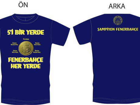 Kulübün internet sitesinde yapılan açıklamada, tişörtlerin bu akşamdan başlayarak, öncelikli olarak Fenerbahçe Şükrü Saracoğlu Stadı'ndaki Fenerium mağazalarında satışa sunulduğu, daha sonra da tüm Fenerium mağazalarında satışa sunulacağı bildirildi. Tişörtlerin ön yüzünde ''5'i Bir Yerde, Fenerbahçe Her Yerde'', arka yüzünde ise ''Şampiyon Fenerbahçe'' yazıları yer alıyor.