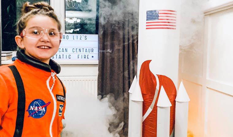 içerikleri paylaşan Elizabeth, evinin bahçesinde yaptığı uzay deneyleri ile