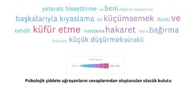 Araştırmanın ortaya çıkardığı bir diğer nokta insanların psikolojik şiddeti günlük yaşamlarında tanımlayamamaları. Psikolojik şiddete uğrayanların %10’u bunu tanımlayamadıkları için yaşadıklarının tam olarak farkında olamıyor.