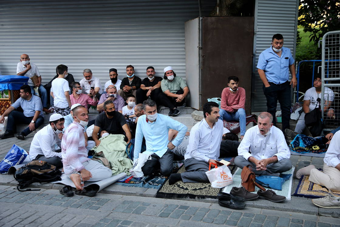 Ellerinde seccadelerle gelen vatandaşlar caminin bulunduğu bölgedeki güvenlik noktalarında durduruldu. Bunun üzerine bazı vatandaşlar başka camilere giderken, bazıları ise güvenlik noktalarında saf tutarak namaz kıldı.