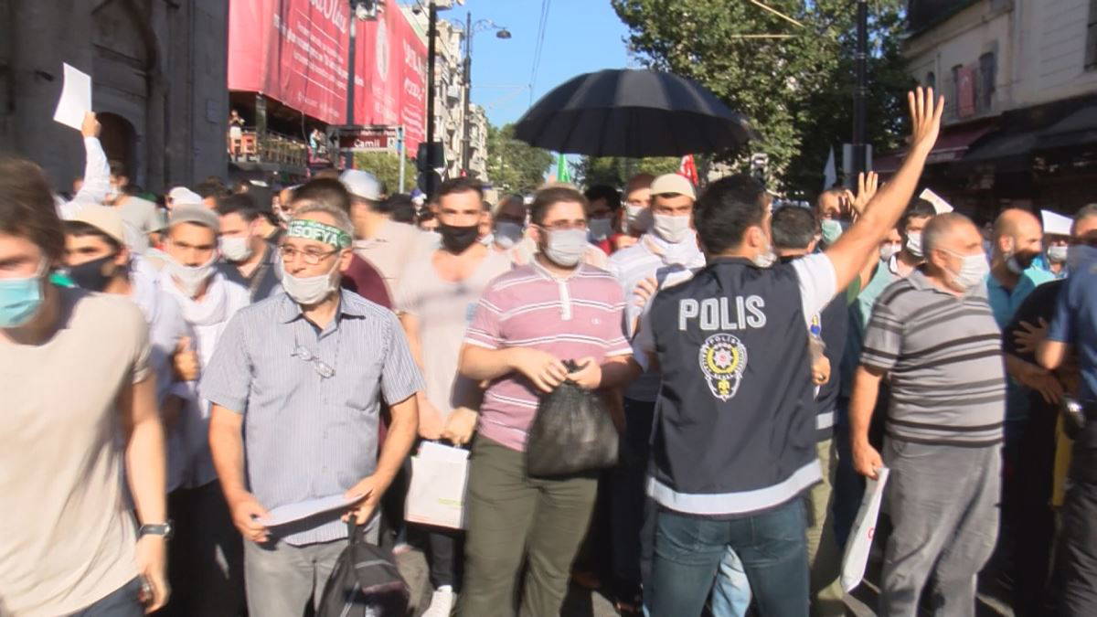 POLİS BARİYERİNİ AŞAN KALABALIK AYASOFYA CAMİİ'NE DOĞRU KOŞTU