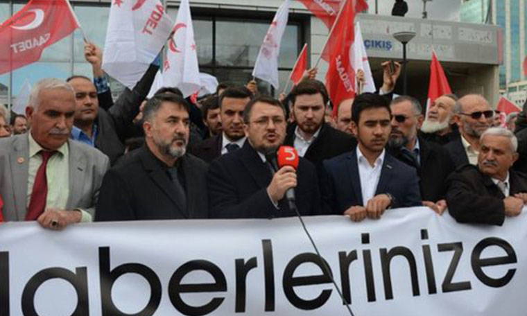 Saadet Partisi üyeleri, A Haber'in partileri hakkında "yalan" haberler yaptığı iddiasıyla A Haber Ankara Bürosu önünde protesto gösterisi düzenledi. Milli Gazete'de yer alan habere göre A Haber'in, "Saadet Partisi Ankara’da Mansur Yavaş’ı destekleyecek" haberine tepki gösteren Saadet Partisi Ankara İl Başkanı Av. Fatih Beyazıt, "Saadet Partisi olarak Türkiye'mizin 1.389 seçim bölgesinin tamamında olduğu gibi Ankara’nın 25 ilçesinde ve büyükşehirde aday çıkarttığımızı sizlere daha kaç kere daha söylememiz icap eder." dedi.